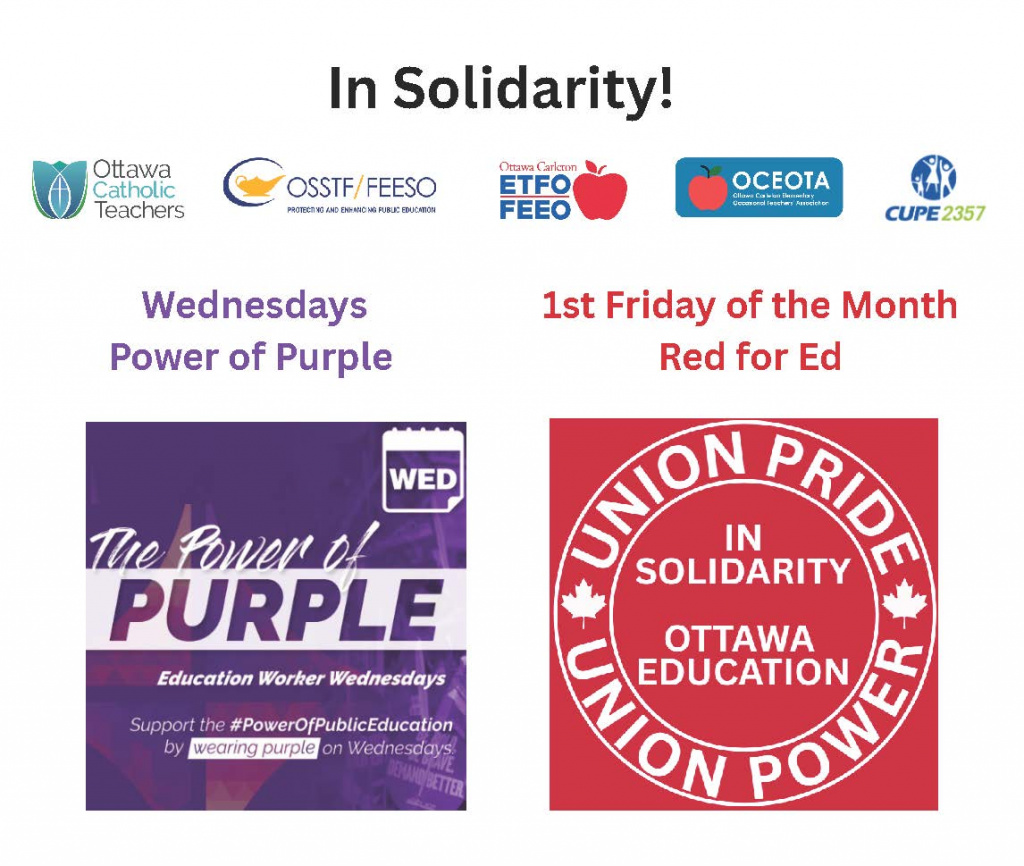 Ottawa’s education unions are standing together in solidarity to proudly take part in Red for Ed on the first Friday of every month and Power of Purple on Wednesdays each week.
